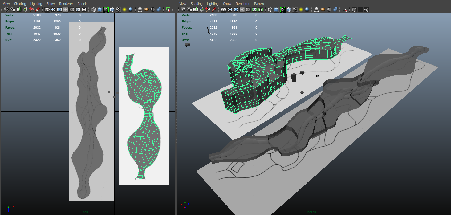 For testing and iteration purposes, each section was modeled in Maya, of course this gave the level of control needed when modeling some initial areas. For these I followed my design sketches, however also measured them where I needed to in order to make sure they are playable.